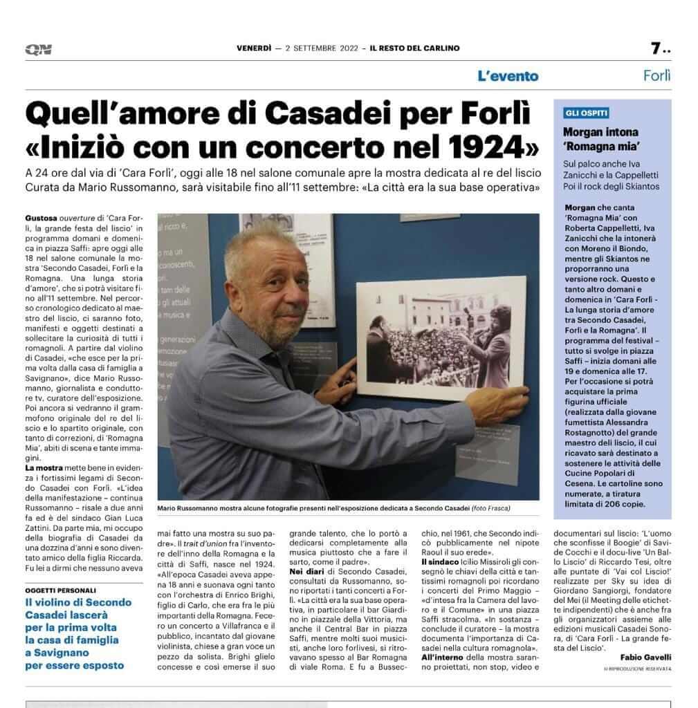 “Uso il termine Pop perché pochissimi, nel Novecento, furono popolari quanto Secondo. Sia perché era apprezzatissimo: le spose chiedevano una sua canzone il giorno delle nozze, ai bambini si dava il suo nome. I suoi dischi, ne vedremo in mostra, erano appesi nei tinelli delle case di campagna. Sia perché stette sempre dalla parte della sua gente, quella laboriosa e semplice che lui aveva coccolato e che a lui s’era sempre rivolta con affetto. In mostra potrete “toccare” il violino che durante la seconda guerra mondiale s’era portato nella stalla in cui abitava con la famiglia. Non aveva più reddito: per cinque anni nessuno ballò, in Romagna, e Secondo riprese ago e filo, lui che aveva inciso dischi a Milano per “La voce del padrone”, e si mise a fare il sarto ambulante tra le campagne. Tutti lo sostenevano con qualcosa da mangiare per sua moglie Maria, per i figli Gianpiero e Riccarda.